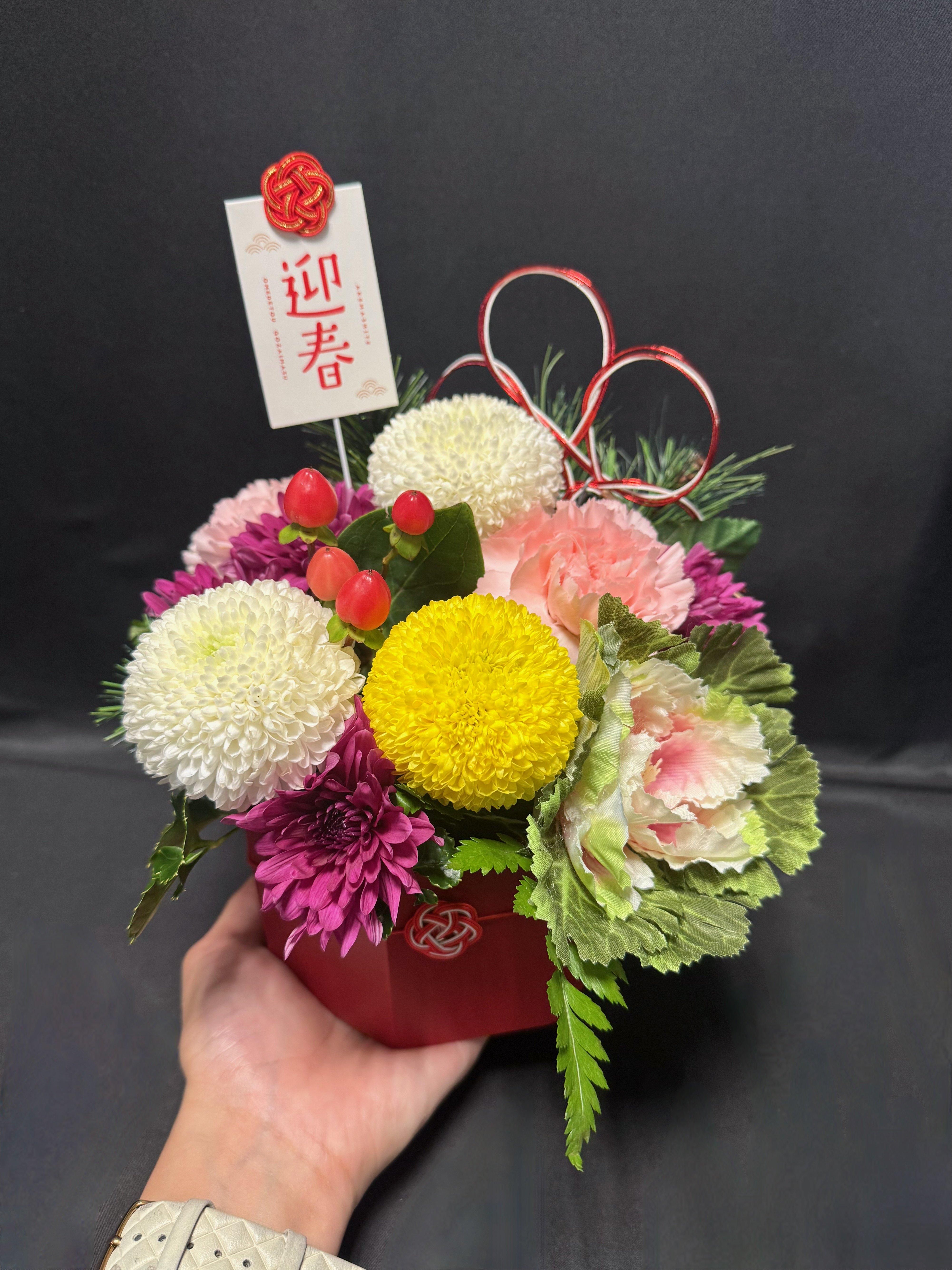 1年の始まりにふさわしい、縁起のいいお花を使ったアレンジメント。